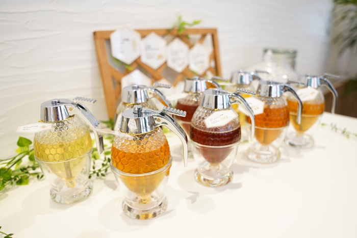 ミールミィ三条本店に併設されているカフェでは、すべてのドリンクやフードに8種類のはちみつがかけ放題。お好みのはちみつを好きなだけかけて楽しんで頂けます。