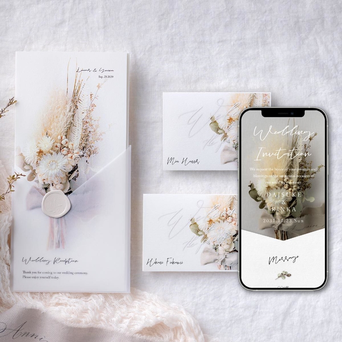 【印刷込】招待状(無料)+席次表+席札セットに今なら「WEB招待状」も無料で付いてきます!