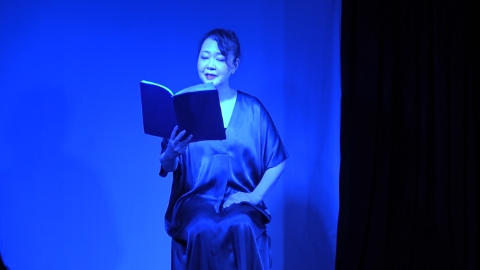 劇団第三エロチカ退団後、朗読の道へ。シャンソン歌手としての顔も持つ。趣味は謡。
