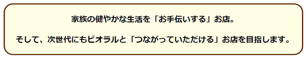 ファミリー世帯が多く、新駅開業でにぎわう箕面市・北摂エリアで、“BIO-RAL(ビオラル)”と「つながっていただける」お店として、370種類以上のプライベートブランド“BIO-RAL”の商品や食品添加物や健康、素材に配慮したお惣菜を取り扱うなど、ナチュラルライフスタイルをご提案いたします。