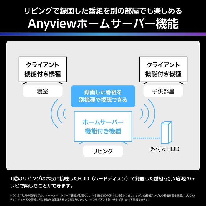 ※本機能はDTCP-IPに対応しておりますが、他社製テレビとの接続は動作保証いたしかねます。
