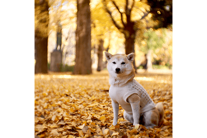 公園は人間だけでなく、わんちゃんにとっても憩いのスポット。画面たっぷりに見せたイチョウの黄色の中に、少し凛とした雰囲気のわんちゃんがとっても似合います。お洋服も紅葉にマッチ。季節を感じる公園の風景+犬という写真を真似して撮ってみたくなる作品です。