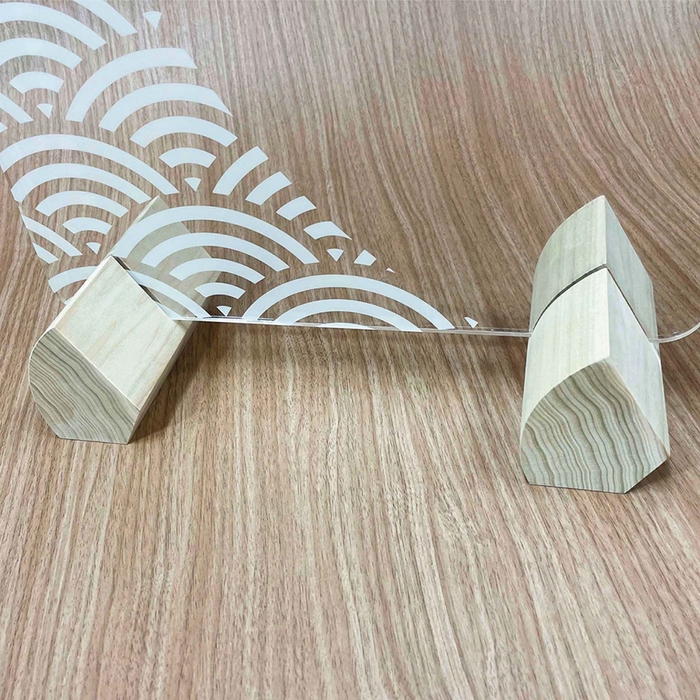 あたりまえのような透明アクリルパーテーションに飽きてしまった方へ、今までにない和風柄デザインの木製足付きアクリルパーテーションを開発しました。