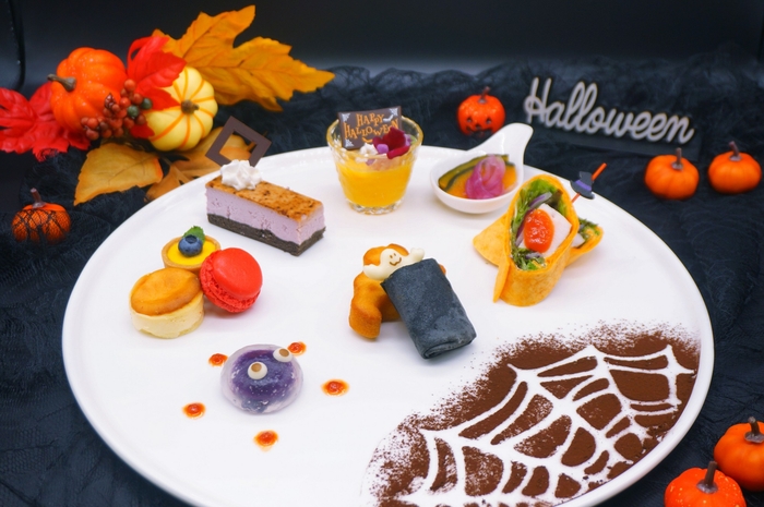 ハロウィン期間中のアフタヌーンティーセットは、かぼちゃやサツマイモなど秋の味覚を使用したスイーツに、ハロウィンの飾りを添えて可愛らしい雰囲気でご提供します。