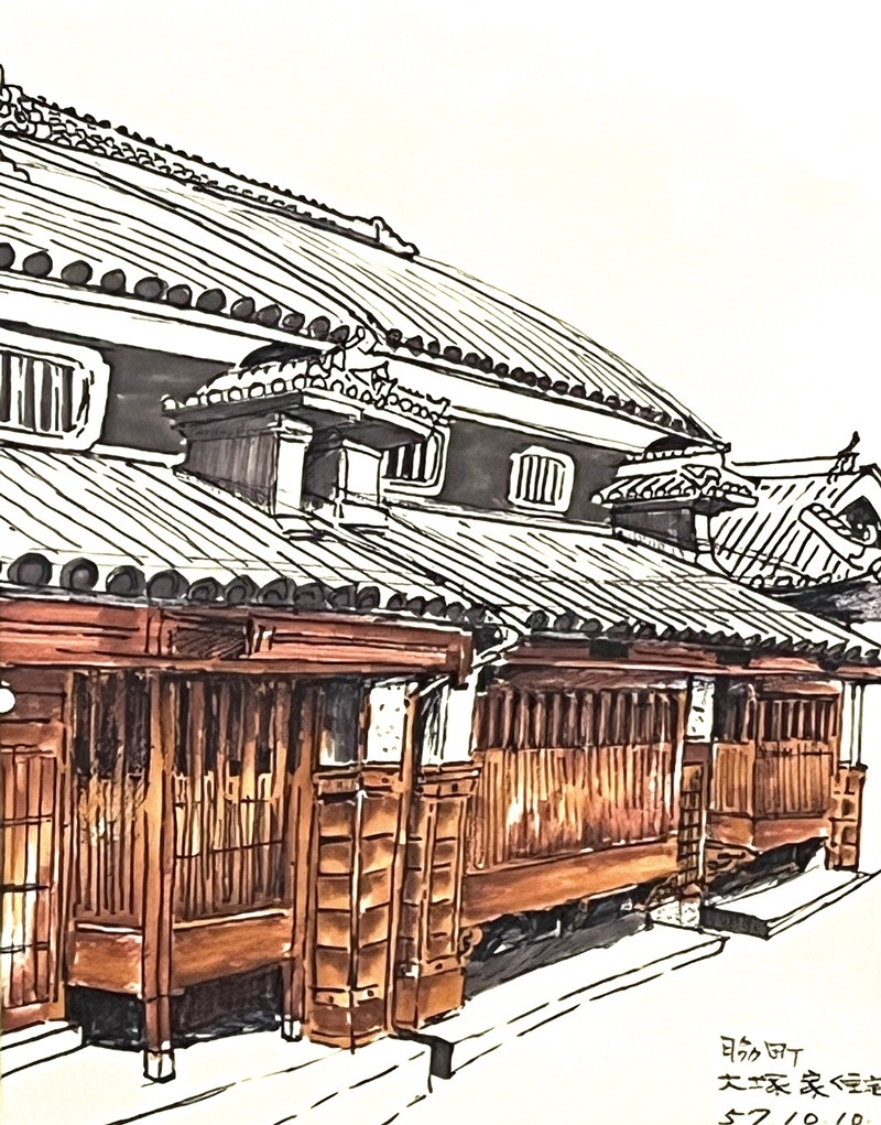 古民家の「うだつ」の研究家でもあった中西徹氏が全国を旅してスケッチした「うだつ」の絵をはじめ、各地の寺院や祭りなどのスケッチ画を展示いたします。