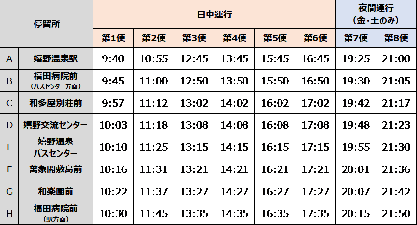※運行期間中の金曜日と土曜日(10月5日(土)除く)は夜間便(2便)を運行