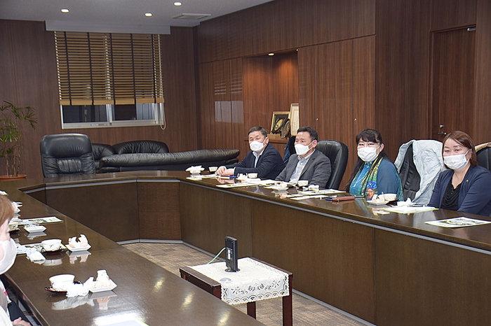 訪れたのはほかに、ホロルダグバ研究イノベーション機構長、ツォグゾルマ国際交流所長ら。理大側は平野学長ほか、松浦洋司副学長、富岡直人副学長、高原周一科学ボランティアセンター長(教育推進機構教授)らが学長室で迎えました。