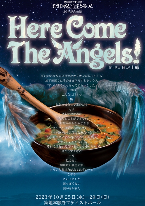 ぷろじぇくと☆ぷらねっと(代表:日疋士郎)主催、『Here Come The Angels!』が2023年10月25日 (水) ~2023年10月29日 (日)に築地本願寺ブディストホール(東京都中央区築地3-15-1)にて上演されます。