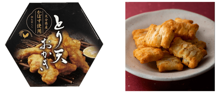 大分県の郷土料理とり天をイメージしたおかきです。国産のもち米のみを使用し、大分県産のかぼすで酸味を効かせました。個包装で配りやすいのもおすすめポイントです。