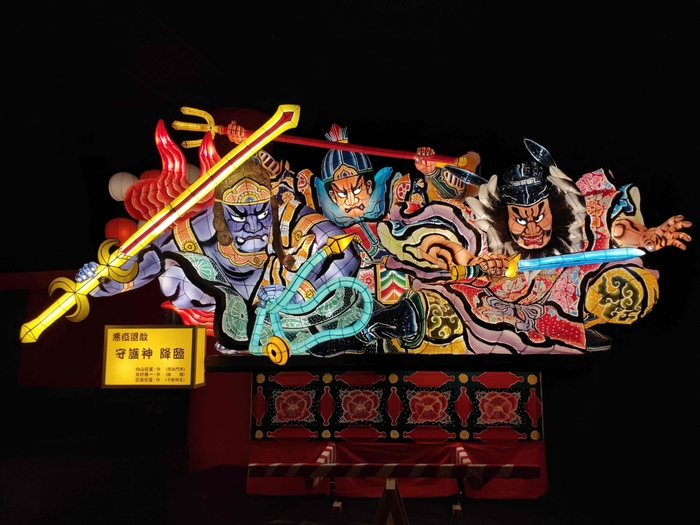 2020年4月、コロナの影響で青森ねぶた祭が中止になりました。これにより、運行するはずの山車の制作が中止となり、制作途中のものは解体または保管を余儀なくされました。毎年祭りに情熱を注いできたねぶた師の方々が作品制作の場を求めているという思いを聞き、青森屋は3人のねぶた師に呼びかけ、プロジェクトを立ち上げました。そして、日本で初めて流派を越えた合作ねぶたが完成しました。