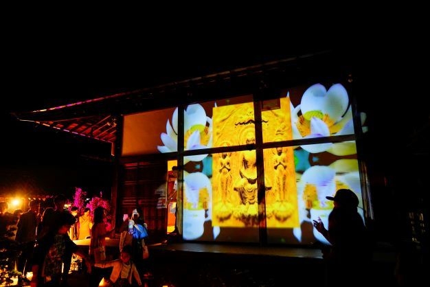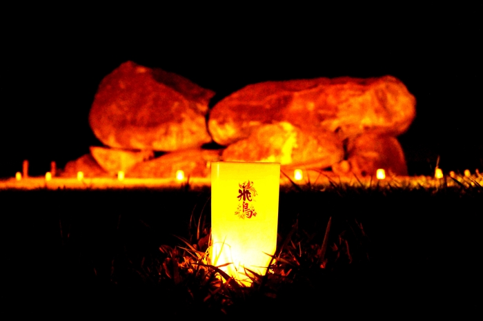 メイン会場は、石舞台古墳周辺、飛鳥寺、岡寺、川原寺、橘寺などで、2025年に世界遺産登録を目指すエリアを幻想的に灯します。