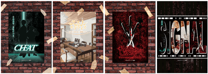 ※「CHEAT」「ラストサプライズ」「招かれざる客たち」は順不同で遊ぶことができますが「SIGNAL」は「CHEAT」「ラストサプライズ」「招かれざる客たち」のキットを使用しないと解くことができません。