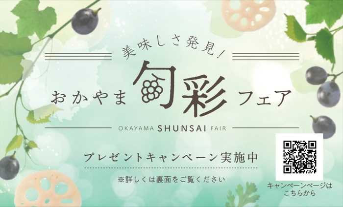 期間中、フェアメニューを注文された方の中から抽選で10名様に「岡山市の特産品詰め合わせ」が当たるキャンペーンを実施しています。店舗スタッフから応募用のカードをお受け取りいただき、ご応募ください。