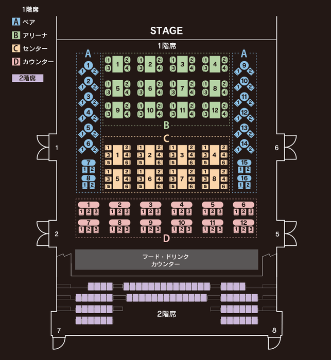 ペアシート(2席セット)は19,000円、アリーナ席とセンター席はそれぞれ9,000円、カウンター席は8,500円です。