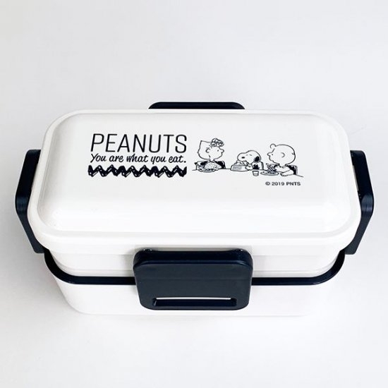 2段式でドーム型のフタが機能的な、スヌーピーのランチボックスです。ホワイト×ブラックのモノトーンがシンプルでオシャレ♪フタは4点で留めるタイプなので、カッチリロックできちゃいます。