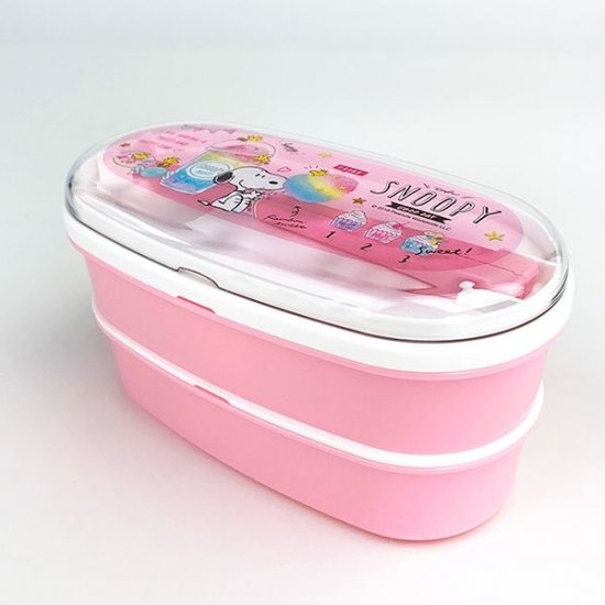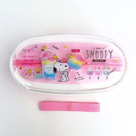 ピンクのガーリーなランチボックスも、ご用意しました♪2段式のオーバルフォルムで、コットンキャンディなどのデザインがキュートですよね。ランチベルトも付属しています。