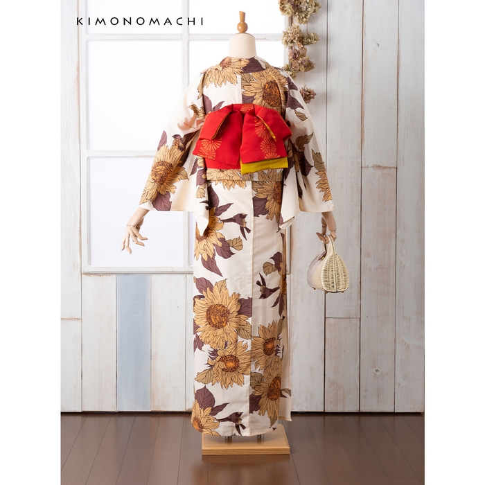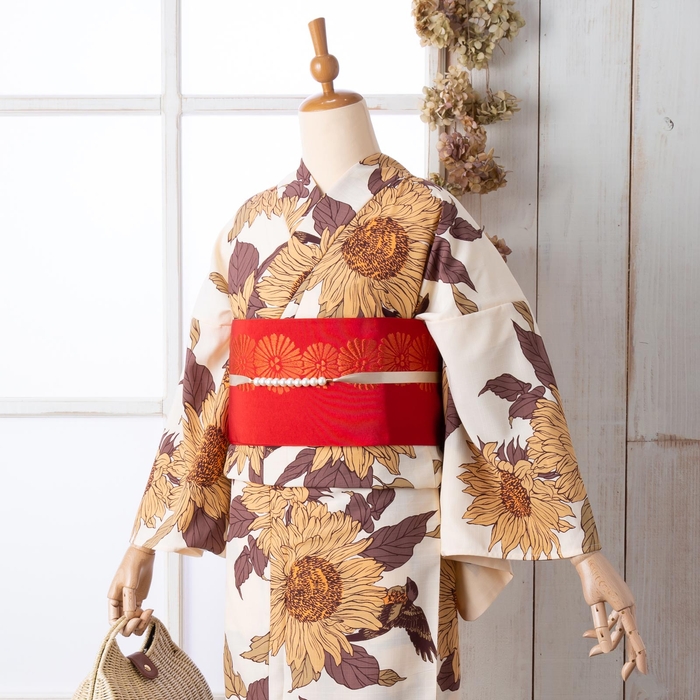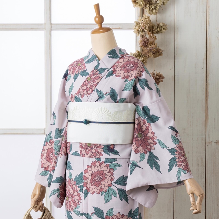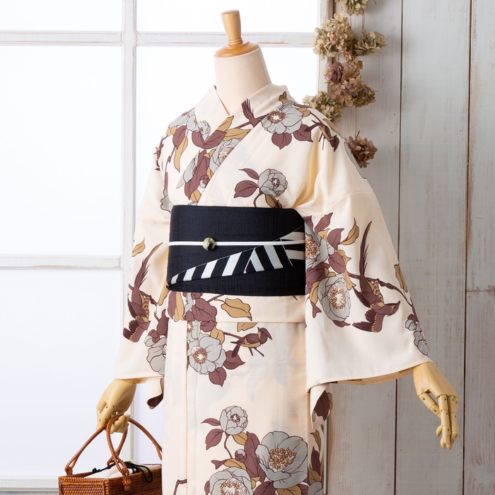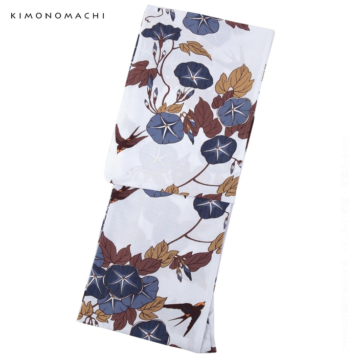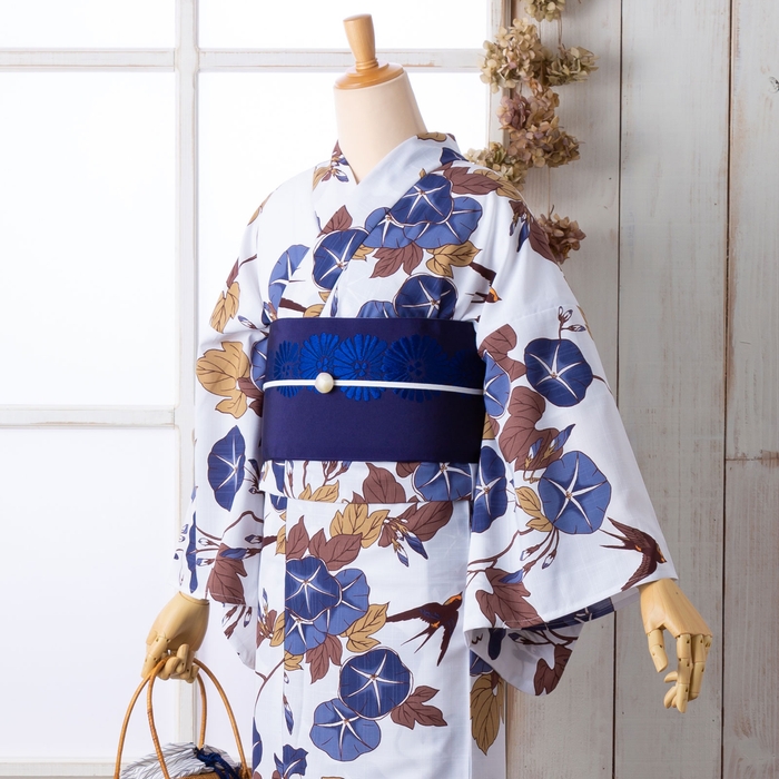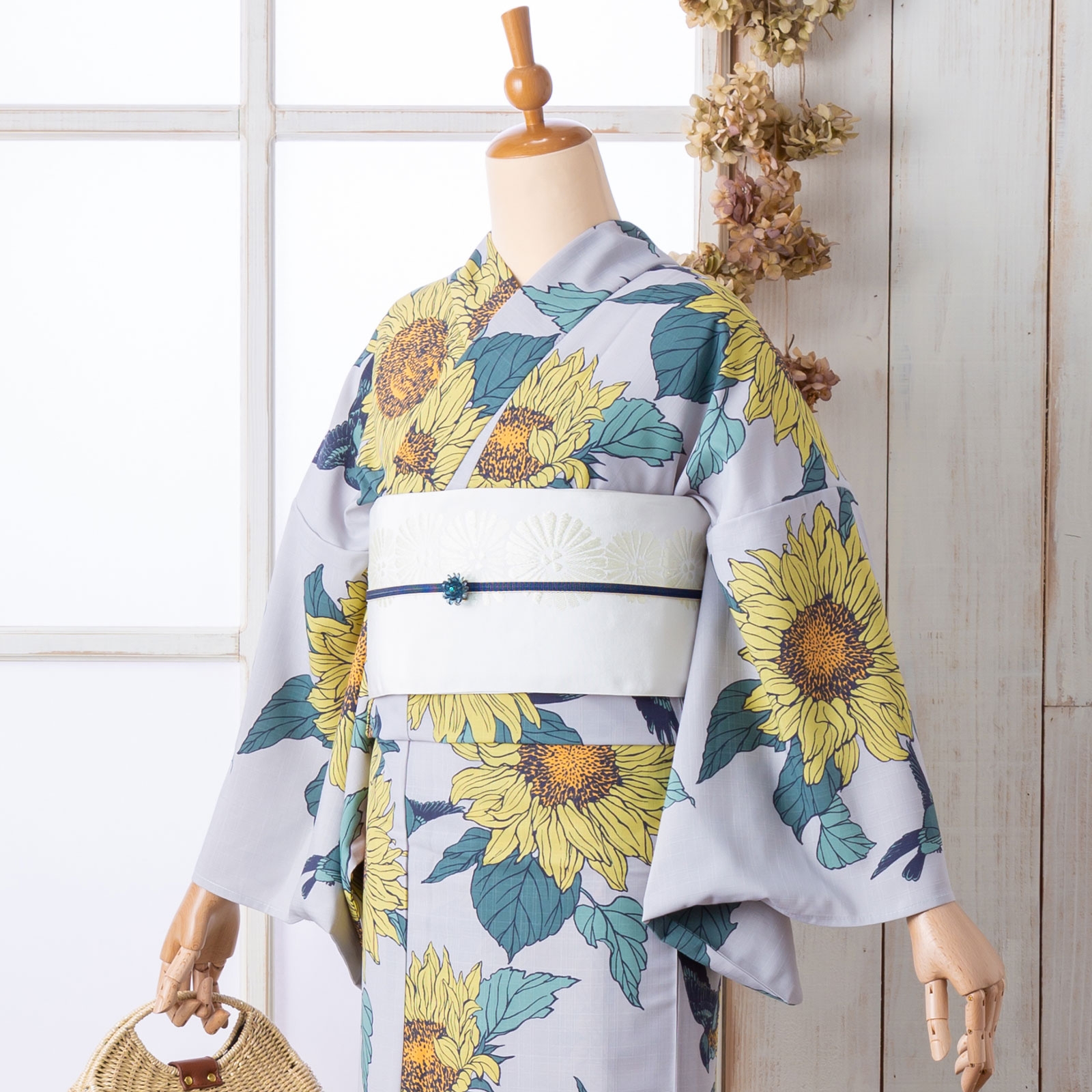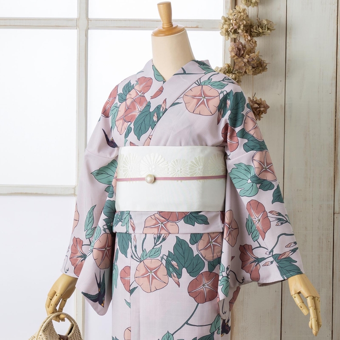 浴衣や夏着物に合わせたり、また小紋などの普段のお着物にも合わせてることができ、気軽に楽しめる帯となっている。