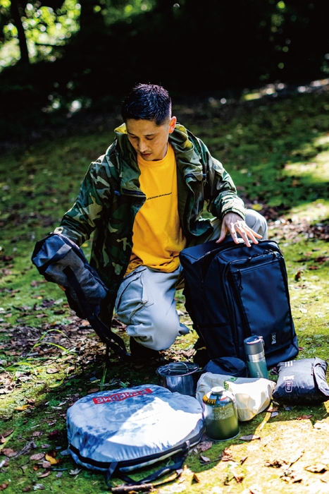 〈COHESIVE 35〉はナイロンのベーシックモデルで、 35Lサイズに大小・用途の異なる8つのポケットを装備し、 アタッチメントフラップには寝袋やアウター&シューズ、 外出先で増えた荷物などを挟み込むことが可能だ。