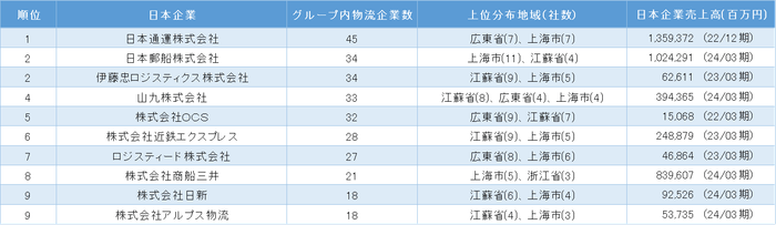 「中国における日系物流業の市場動向」調査結果を発表 ~子会社数は「日本通運」が最多、 海外物流で新たなビジネスチャンスの可能性~