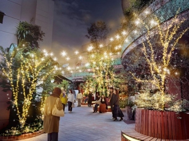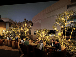 KUZUHA MALLのダイニングストリートは、2023年に緑あふれる癒し空間にリニューアルしました。1F通路や2Fテラス席は約2万球のグローブストリングライトがぬくもりを添えます。今年はさらに光の演出を自由にカスタマイズできるTwinklyイルミネーション1,500球を使用したツリーを本館ミドリノモール1F正面入口に設置し、ロマンティックなクリスマスの雰囲気を一層引き立てます。