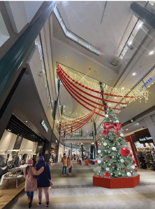 今年のクリスマスは“りんご”がテーマ。館内には高さ4.7メートルのりんごモチーフのツリーが登場し、2Fから3Fの吹き抜けにはベルベットのリボンと光り輝く装飾が施され、心温まるホリデーシーズンを彩ります。