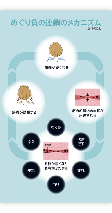 様々なストレスがかかっている時、無意識のうちに毛細血管は収縮し筋肉は緊張します。