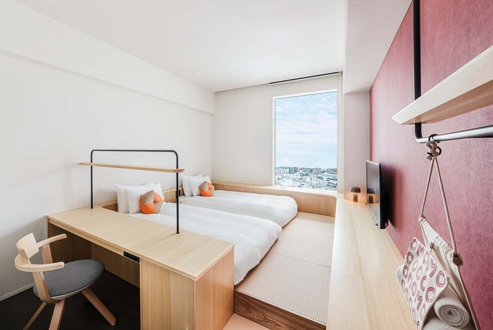 当ホテルは、8タイプ全160の客室があり、旅の目的や同行者に合わせて選べます。新しい形のツインルーム「えんたくルーム」と「うつわルーム」が新登場。客室の壁紙は、熊本の豊かな山や滝などから着想した色を使用しています。