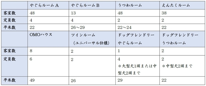 付帯施設 :フロント、ライブラリーラウンジ、ショップ、カフェテリア「OMOカフェ&バル」(外来利用可能)、ロッカー、ランドリーなど
