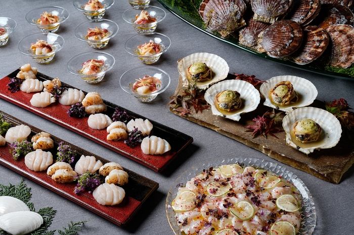 青森の文化を満喫できる宿「星野リゾート 青森屋」と奥入瀬渓流(おいらせけいりゅう)沿いに立つ唯一のリゾートホテル「星野リゾート 奥入瀬渓流ホテル」は、2020年11月1日~30日の期間、両施設のビュッフェレストランで「ホタテフェア」を開催します。これは、農林水産省が推し進める「#元気いただきますプロジェクト」に賛同した取り組みです。11月は、2つのレストランで合計8種類のホタテ料理を提供し、1か月で約6万枚のホタテを消費する見込みです。