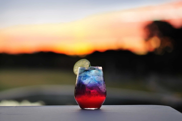 朝食とともに、朝焼けをイメージしたオリジナルモクテルを提供します。空をイメージする美しい青色のバタフライピーを使用したモクテルに、シークヮーサーの果汁を加えるとピンク色に変化します。時間とともに色が移り変わる空の様子を表現しました。夏の朝にぴったりな柑橘の酸味がアクセントになる爽やかな味わいです。