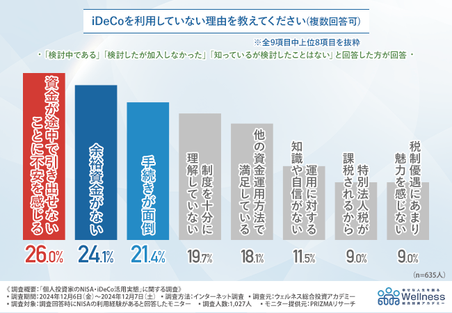 資金を途中で引き出せないことが最大の懸念事項となっており、余裕資金のなさや手続きの煩雑さも利用を妨げる要因となっていることがうかがえます。