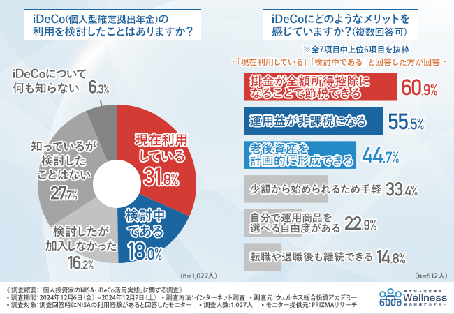iDeCoについて認知度は高く、メリットとして税制優遇や運用益が非課税になることが挙げられる一方で、資金を途中で引き出せないことや手続きの煩雑さが利用を妨げる障壁となっていることが明らかになりました。