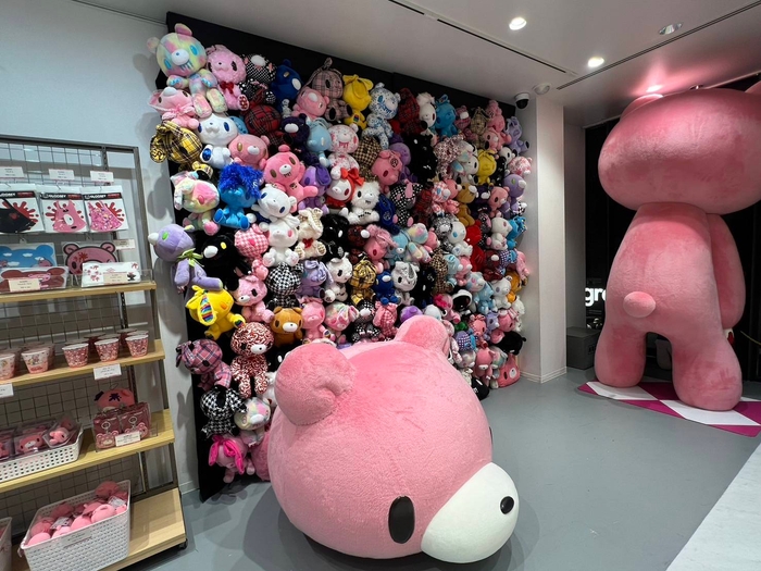 店内はグル~ミ~の世界観で装飾されており、およそ3mほどある大きな「ジャイアントグル~ミ~」の立像の展示や、ぬいぐるみの壁「チャックスウォール」、今回のPOP-UPストアロゴの巨大パネル、などなど写真映えするスポットや展示が盛り沢山です。