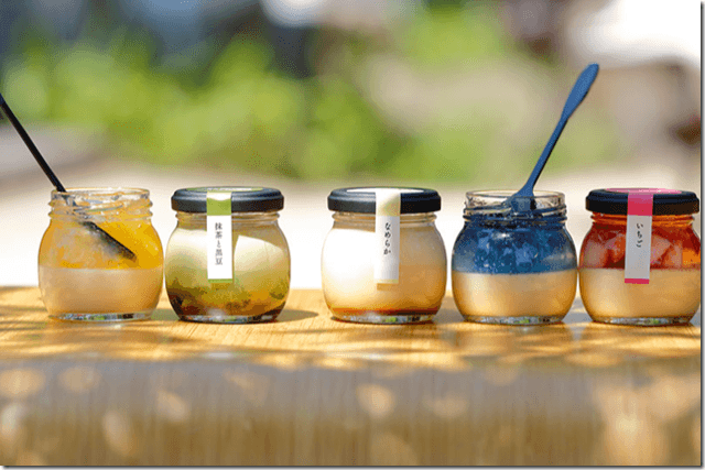 萩の菊ヶ浜をイメージした「渚ぷりん」が本店でも好評で、萩しーまーと店でも「渚ぷりん」を中心に手づくりのプリンを個数限定で発売する予定です。海をイメージした爽やかな青色で、どことなく昔懐かしいソーダ味の「渚ぷりん」は、しーまーとで海鮮料理をお召し上がりになった後のデザートにもぴったりのプリンです。