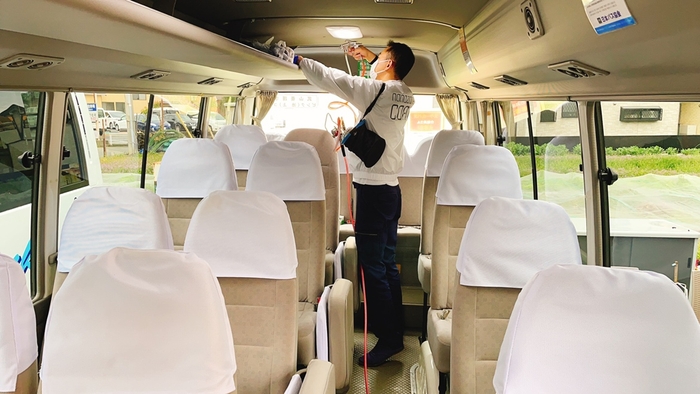お客様に安心してご利用いただけるように、マイクロバス、小型・中型・大型バス、レンタカー、キッチンカー、トゥクトゥク、事務所建物まで、三浦観光バスのサービス提供場所すべてに光触媒により効果が持続する抗ウイルス・抗菌コーティング施工を行い、より安全かつ安心してバスやレンタカーをご利用いただける環境作りを行いました。