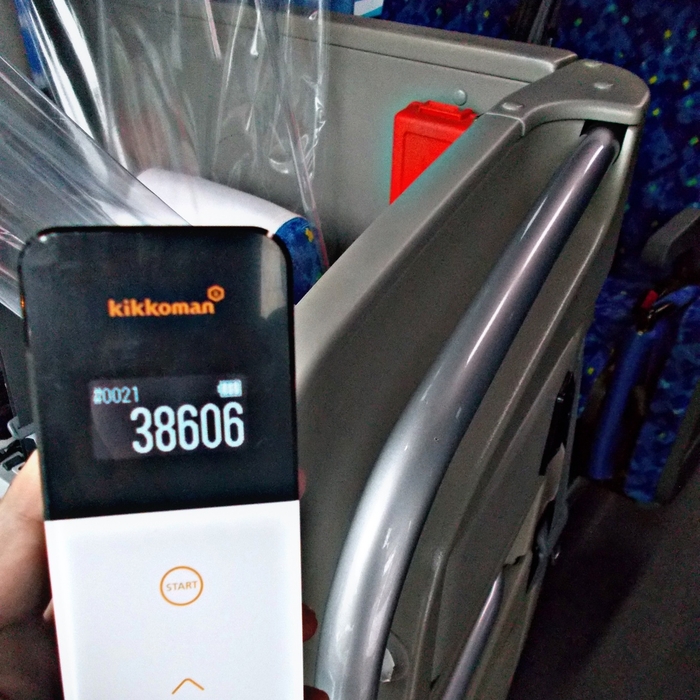 キッコーマン株式会社ルミテスター SmartでATP測定法(ATP拭き取り検査)で菌のエネルギー値を測定しました。