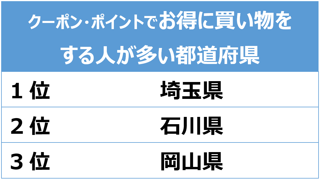 お得に買い物をする人が多い都道府県1位「埼玉県」2位「石川県」3位「岡山県」