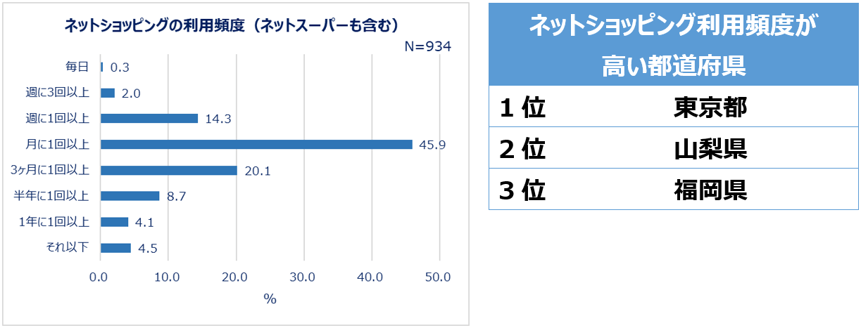 ネットショッピング利用頻度が高い都道府県1位「東京都」2位「山梨県」3位「福岡県」