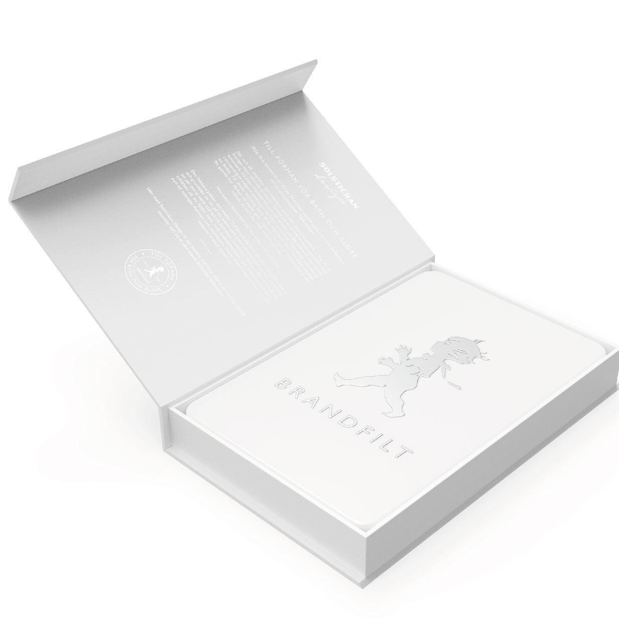 キッチンやリビングなど、火を使う場所にコンパクトに設置でき、いざという時に瞬時に取り出せるデザイン。北欧らしいシンプルでクラシックなSunstick Boyのエンボス加工が施されたスタイリッシュなスチールボックスは、インテリアにも自然に溶け込みます。