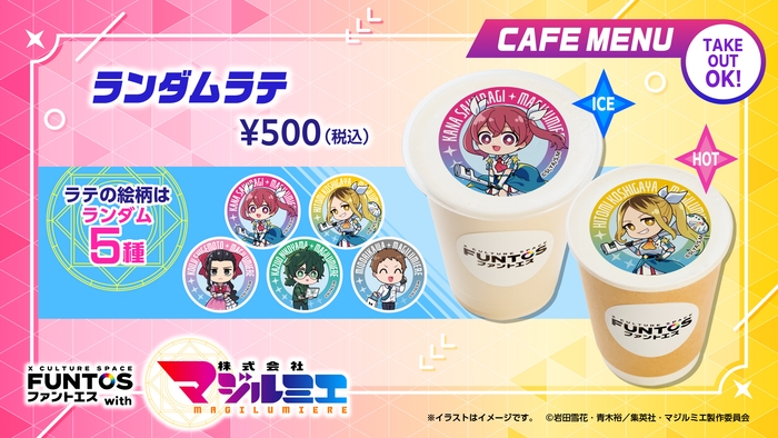 描き下ろしは躍動感あふれるイラストとオフを楽しむ私服イラストの4種類♪ コラボグッズのほか、マジルミエ社の仲間たちのコラボドリンクも販売!