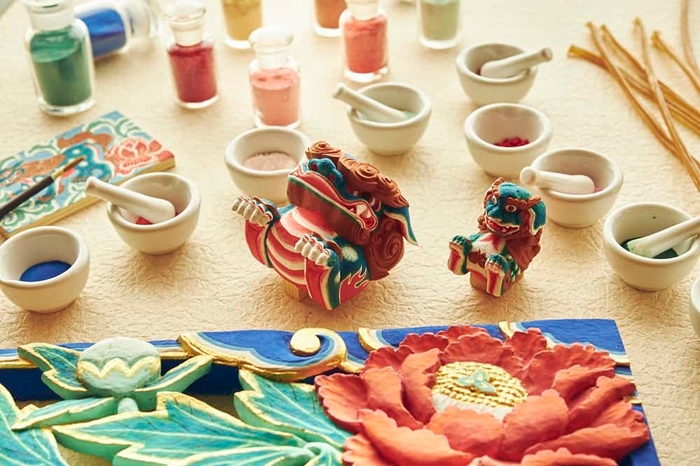 日光東照宮をはじめとする歴史的建造物の修理に携わってきた女性の伝統工芸士、伊原 実穂氏の指導のもと、日光の社寺に実際に使われている岩絵の具などの貴重な材料を使って工芸品づくりを行います。体験をしながら社寺を彩る極彩色や意匠に関する解説を聞くことができ、その後、社寺をめぐると今までと異なる視点で参拝することができます。また、貴重な文化財を守り、後世に引き継いでいく伝統工芸士や修復士という仕事を知る面白さもあります。