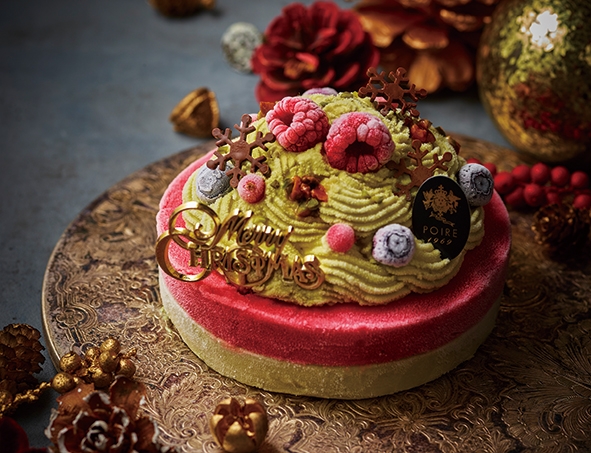 「ポアール」からは南フランスローヌ渓谷原産フランボワーズソルベに香ばしくナッティなピスタチオアイスを合わせたリッチなクリスマスアイスクリームケーキを販売。