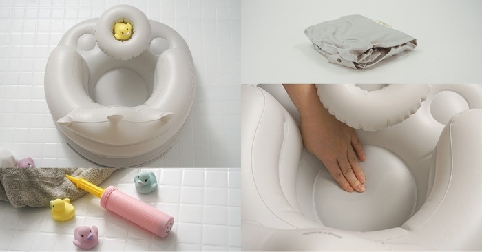 「派手な色や柄が多く、バスルームやリビングにマッチせず嫌だった」という意見があったことから、そのまま置いていてもインテリアに馴染む、淡いライトグレーのカラーを採用しました。主張の少ないシンプルデザインで、バスルームやリビングをスッキリ見せることができます。背もたれの上部は王冠型になっており、まるで赤ちゃんが小さな王子様・お姫様になったかのような、思わず写真を撮りたくなるかわいいデザインです。