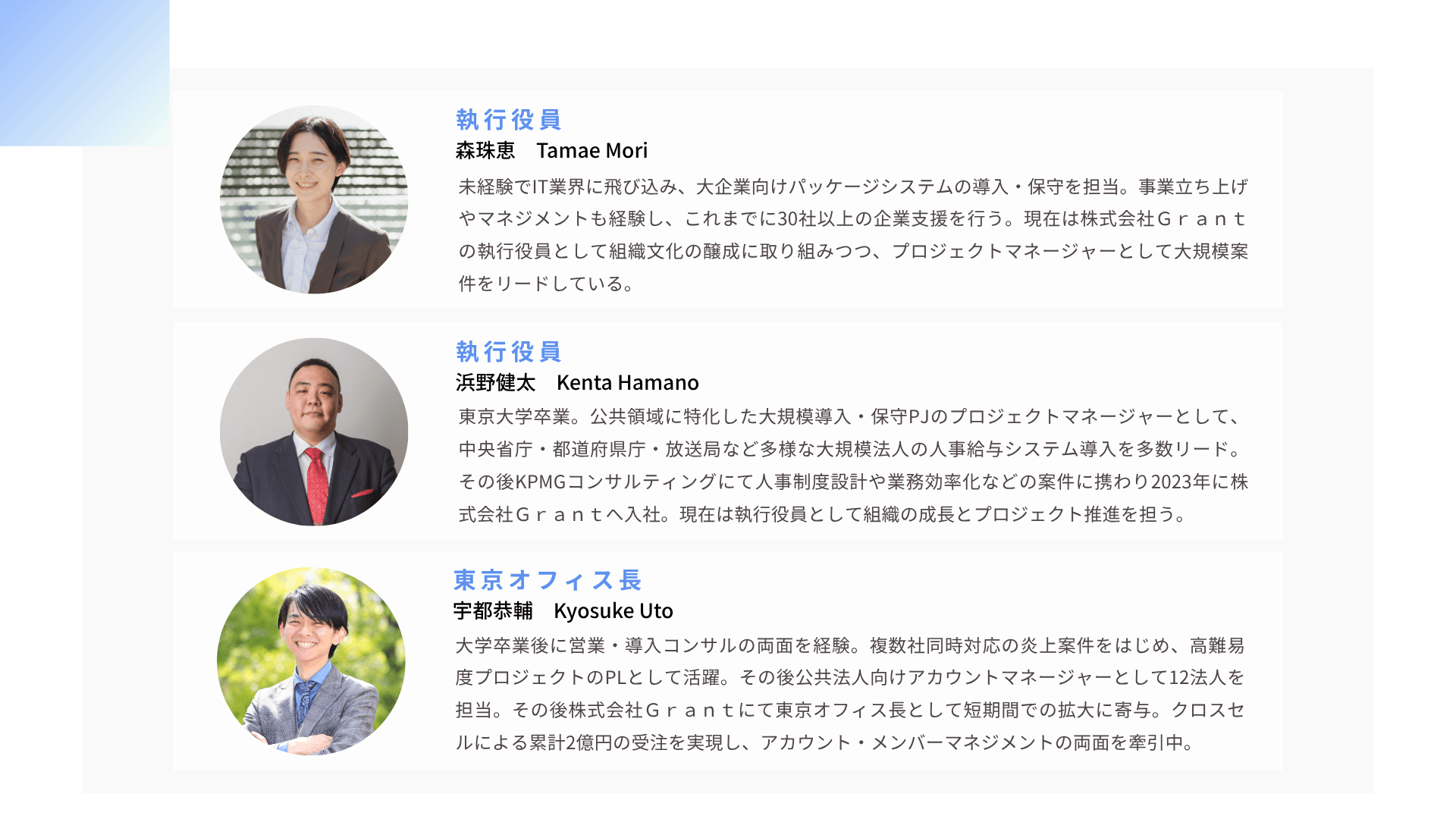 本インターンでは、副社長・取締役・執行役員・現役トップコンサルタントなど、BIG4や大手案件で経験を積んだ精鋭メンバーが直接フィードバックを行います。