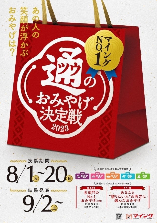 九州最大級のおみやげ処「マイング」では、2022年に17,649票を集めた「マイングNo.1通のおみやげ決定戦2023」を開催します!