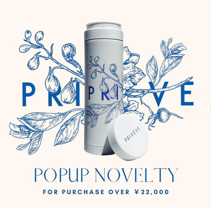 今回2度目となるポップアップショップでは、2021SSの新作に加え、豪華なコラボレーション【Privève Disney Collection】や【Privève × Runa Collection】も今回初お披露目予定である。さらにポップアップ限定ノベルティのサーモタンブラーをご用意。
