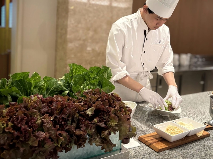 今回収穫した野菜は、そのままホテルに持ち帰りレストランでサラダに使用。