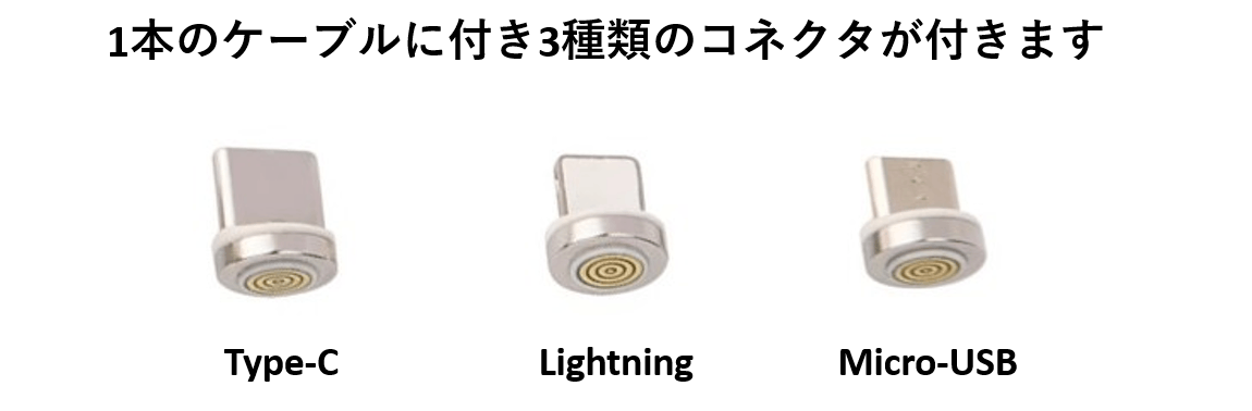 microUSB、ライトニング、Type-Cの端子が付属