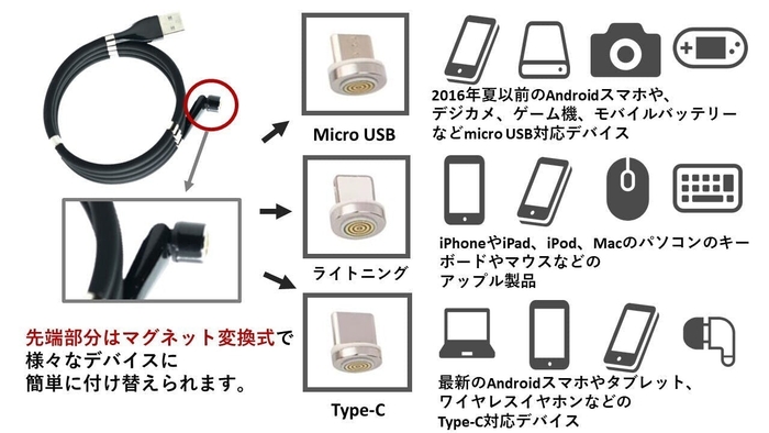 ■マグネットUSBケーブル『Freele Air』の4つの大きな特徴
