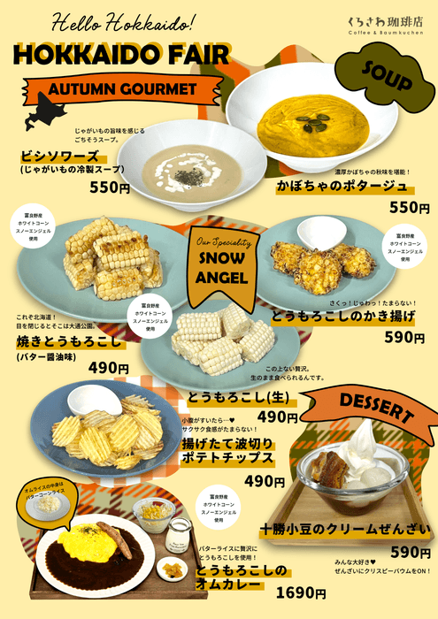 北海道富良野市のスノーエンジェルや旬の北海道素材の味を堪能! 千葉県鎌ケ谷市「くろさわ珈琲店」で秋の北海道フェアを開催